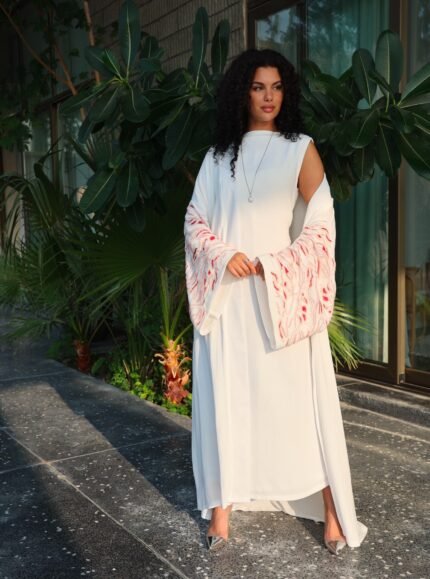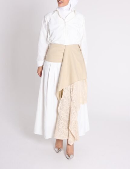 White shirt with wrapped skirt